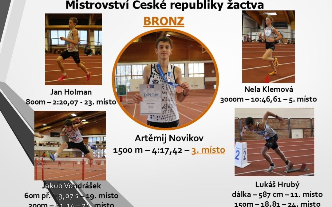 Hned 5 našich atletů se dostalo mezi republikovou špičku a budou usilovat o co nejlepší výsledky na republikovém šampionát v hale ve Stromovce o víkendu 1. a 2. března. Ambice na medaile má Artěmij Novikov, který je na trati 1500 m s 3. nejrychlejším časem...